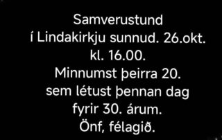 Á morgun sunnudaginn 26. október verður minningarstund á vegum Önfirðingafélagsins kl. 16 í Lindakirkju þar sem 30 ár eru síðan snjóflóðið féll á Flateyri. Stundinni verður streymt á facebook síðu og heimasíðu Lindakirkju.